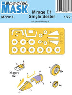 - Hoja de mascara para el caza francés Mirage F.1 monoplaza, en escala 1/72.