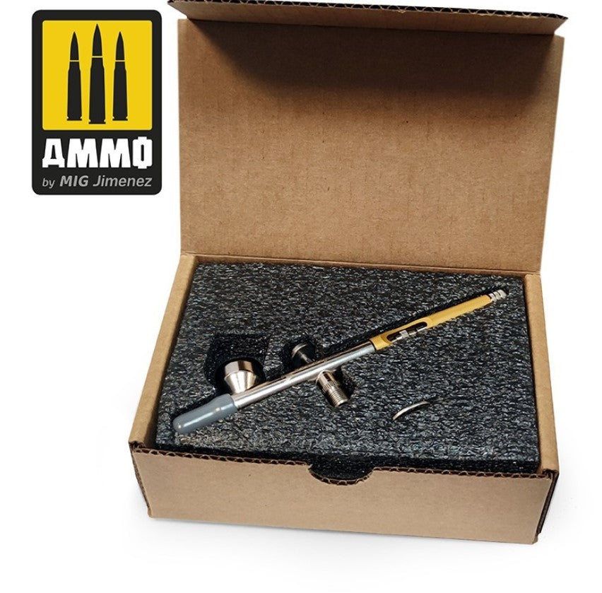 - Aerógrafo de doble acción y alimentación por gravedad.