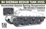 - Modelo de tren de rodaje y suspensión HVSS horizontal para vehículos M4 Sherman, en escala 1/35.