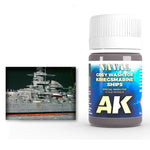 - Este lavado está especialmente diseñado para resaltar los detalles en los buques de guerra grises típicos de la Kriegsmarine, la Armada de los Estados Unidos o la Armada Imperial Japonesa. También se puede usar en otras temáticas como aviones o tanques grises o naves espaciales.