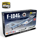 - Avión de caza de origen norteamericano F-104 Starfighter en su versión G, el cual ha servido en multitud de países entre ellos en el Ejército del Aire español, en escala 1/48.