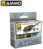 - Set de 4 colores ATOM con base agua, de alta calidad y especialmente seleccionados para decorar tus miniaturas de una manera rápida y sencilla. Da rienda suelta a tu imaginación o sigue fielmente la tradición. Este set te facilita la tarea de elegir los tonos más básicos para helicópteros norteamericanos, ahorrando un tiempo valioso. Los tonos son muy saturados y proporcionan unos acabados muy intensos.