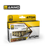- Set de 6 colores ATOM con base agua, de alta calidad y especialmente seleccionados para decorar tus miniaturas de una manera rápida y sencilla. Da rienda suelta a tu imaginación o sigue fielmente la tradición. Este set te facilita la tarea de elegir los tonos más básicos para neumáticos y cadenas de goma óxidadas, ahorrando un tiempo valioso. Los tonos son muy saturados y proporcionan unos acabados muy intensos.