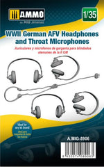 - Conjunto de cuatro auriculares alemanes para tripulación de carros altamente detallados, incluye un juego de laringófono con cable e intercomunicador con clavija. Válido tanto para vehículos como para figuras en escala 1/35.
