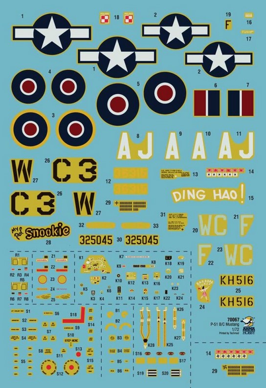 - Modelo del caza norteamericano P-51 Mustang en su versión B o C, en escala 1/72.