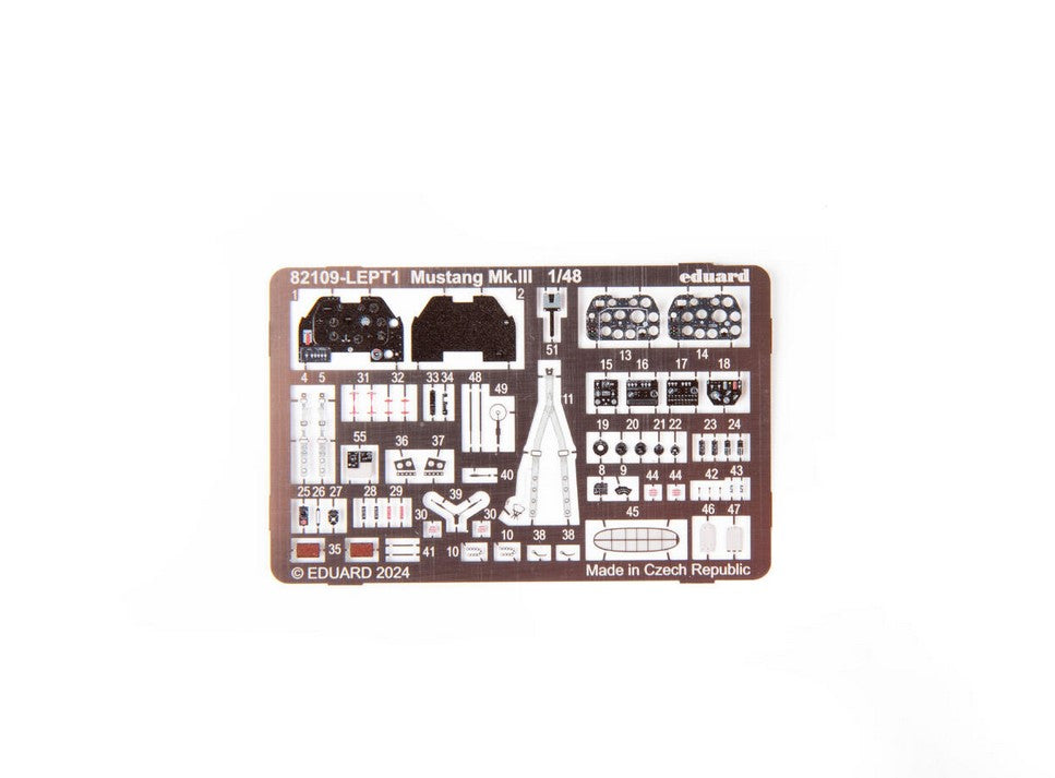 - Modelo del caza estadounidense P-51 Mustang en su versión inglesa Mk. III, en escala 1/48.