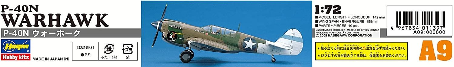 - Modelo de avión de caza norteaméricano P-40 Warhwak en su versión N, en escala 1/72.