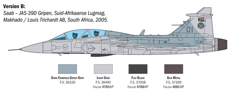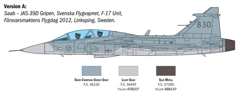 - Modelo de caza sueco Saab JAS 39 Gripen en su versión biplaza de entrenamiento, en escala 1/48.