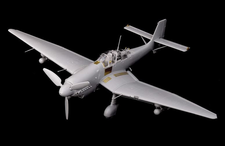 - Modelo del famoso bombradero ligero alemán de ataque en picado Ju-87 Stuka en su versión D-5, en escala 1/48.