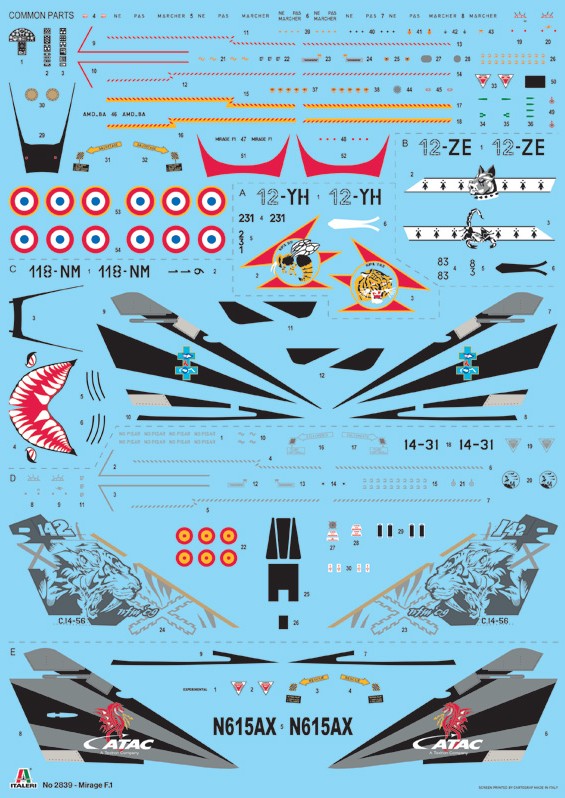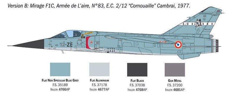 - Modelo del caza francés Mirage F-1 en su versiones C y CR, el cual ha estado operativo en varios países del mundo (España entre ellos), en escala 1/48.