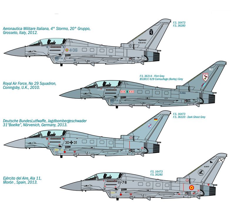- Modelo de avión europeo de caza biplaza Eurofighter EF-2000 Typhoon IIB, en escala 1/72.