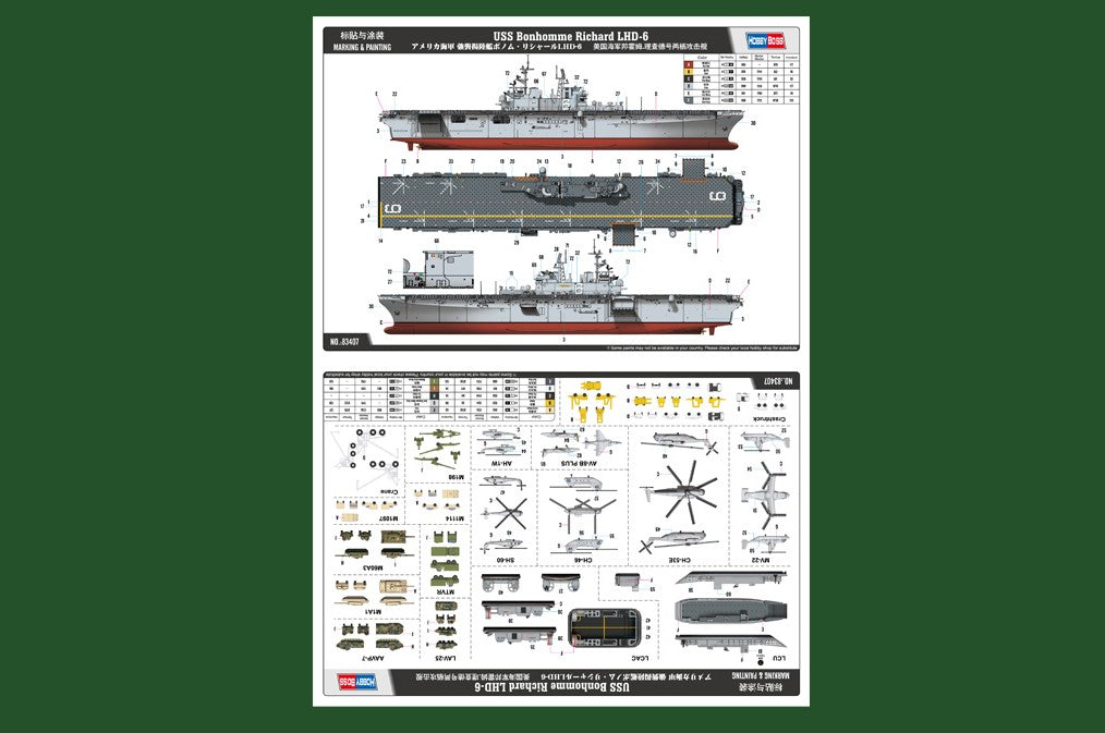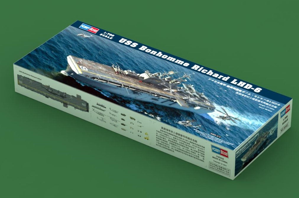 - Modelo de buque de asalto anfibio norteamericano USS Bonhomme Richard con numeral LHD-6, en escala 1/700.