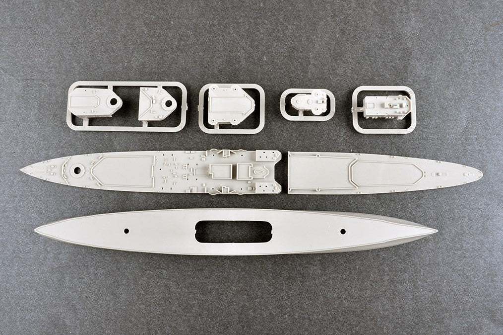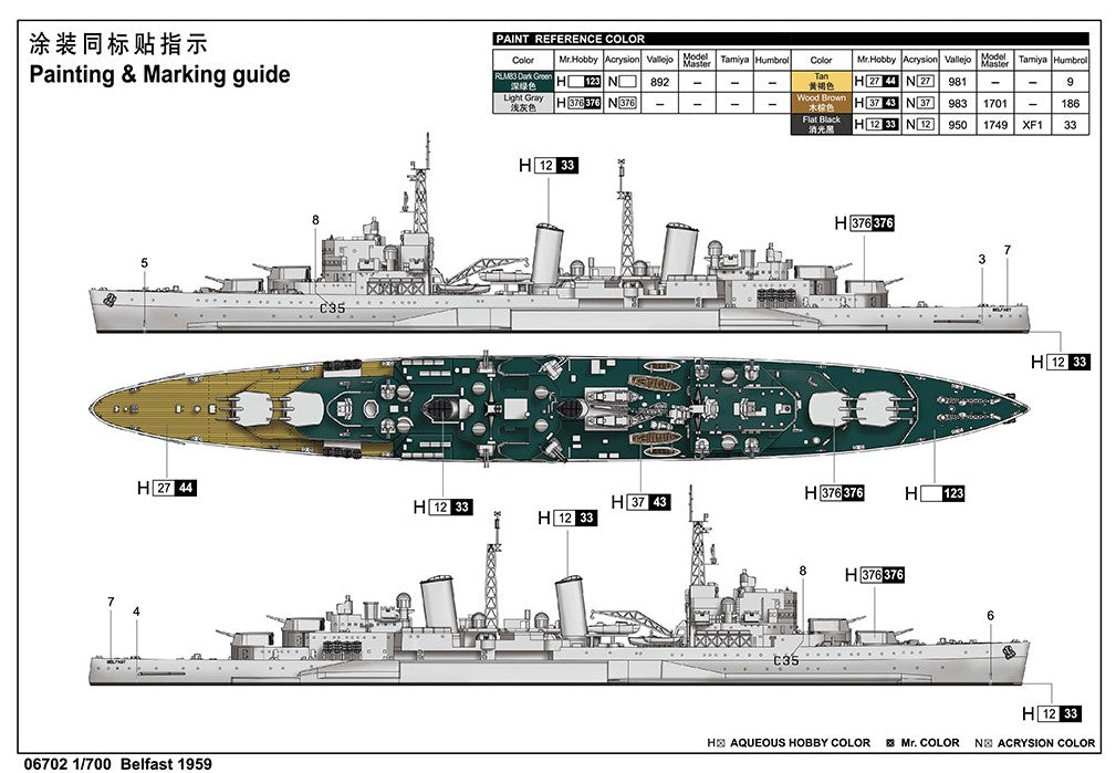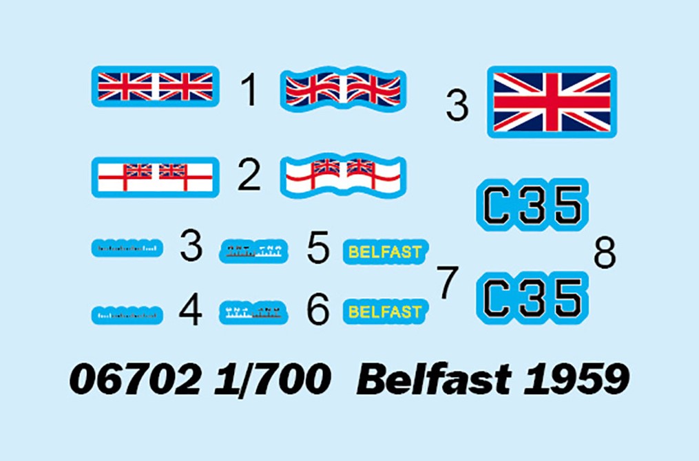 - Modelo del crucero ligero británico HMS Belfast en su configuración de postguerra de 1959, en escala 1/700.