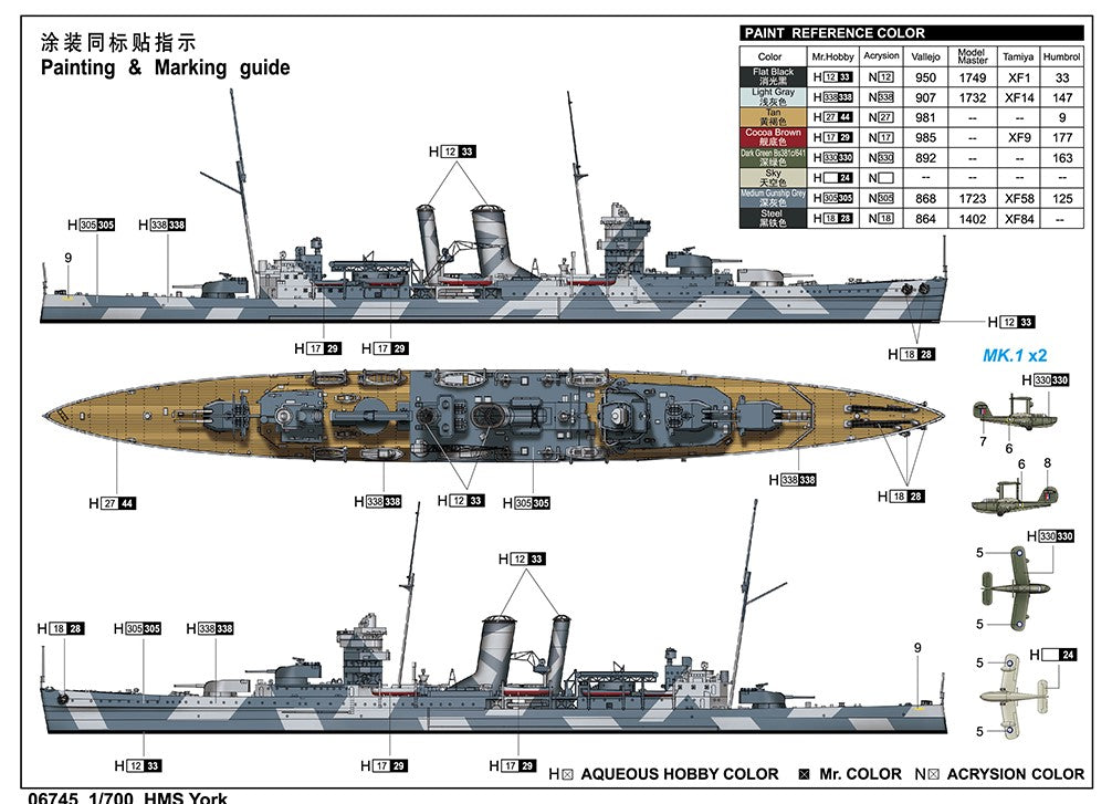 - Modelo del crucero pesado británico HMS York, en escala 1/700.
