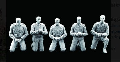 - Conjunto de figuras de cura castrense y soldados norteamericanos en oración durante la Segunda Guerra Mundial, en escala 1/35.