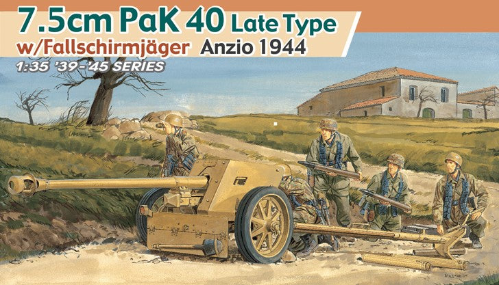 - Modelo de cañón anti tanque alemán Pak40 de 75mm utilizado por Fallschirmjager contra la cabeza de puente aliada en Anzio en 1944, en escala 1/35.