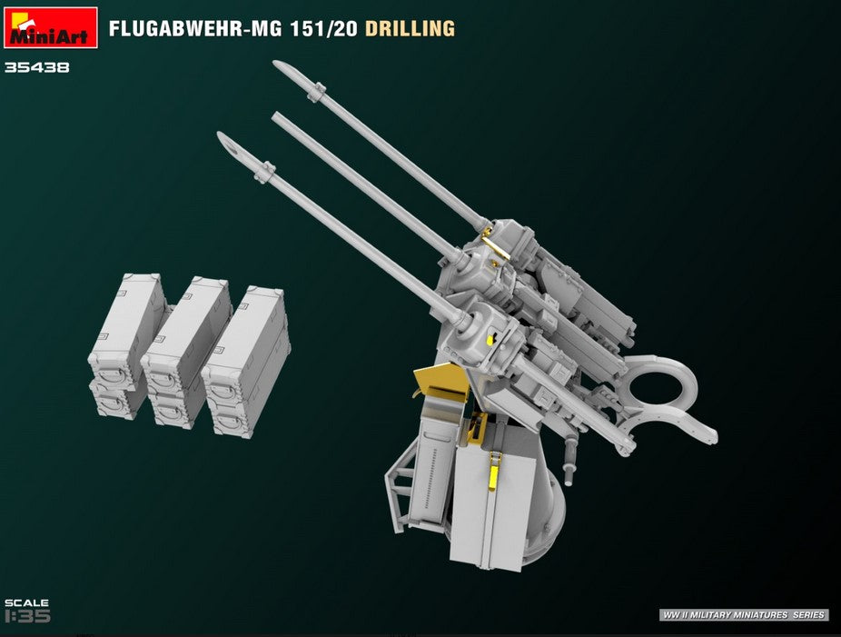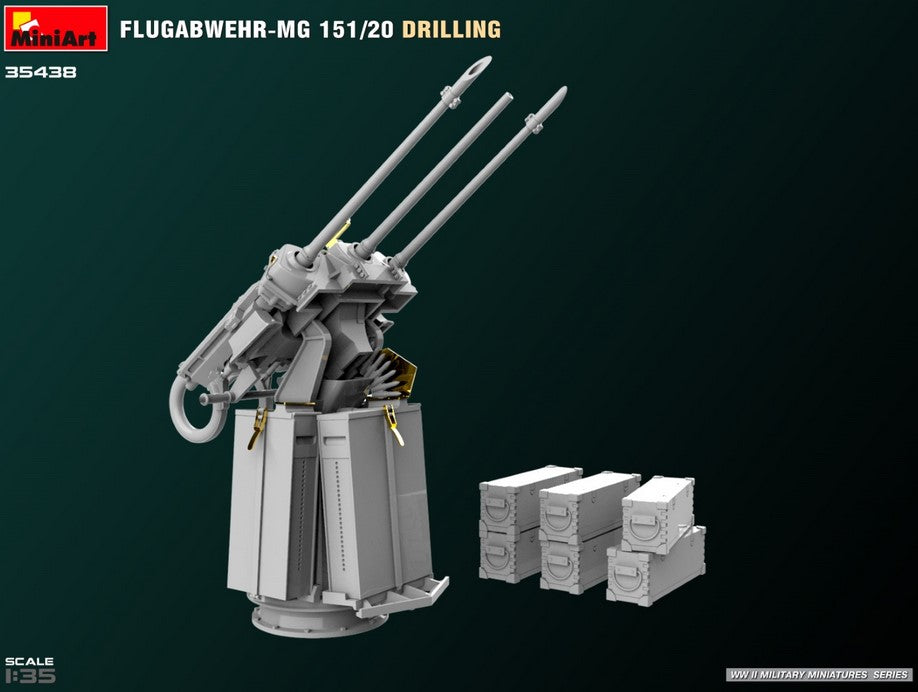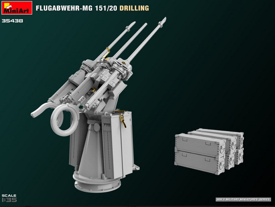 - Modelo de sistema antiaéreo alemán Flugabwehr MG151 con cañones de 20mm, en escala 1/35.
