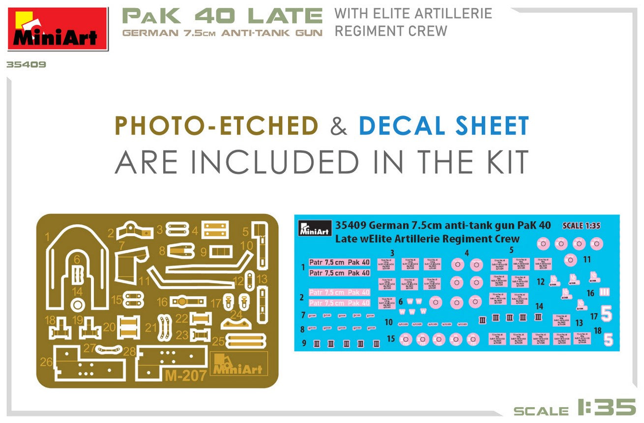 MINIART (1/35) German 7,5cm Anti-Tank Gun PaK 40 Late - With Elite Artillerie Regiment Crew
