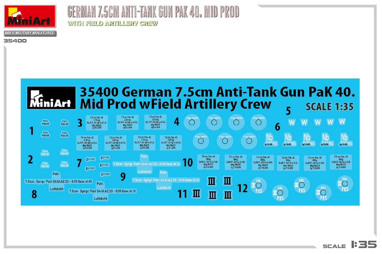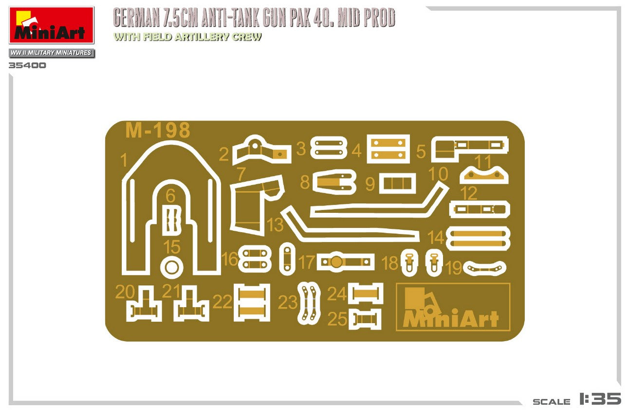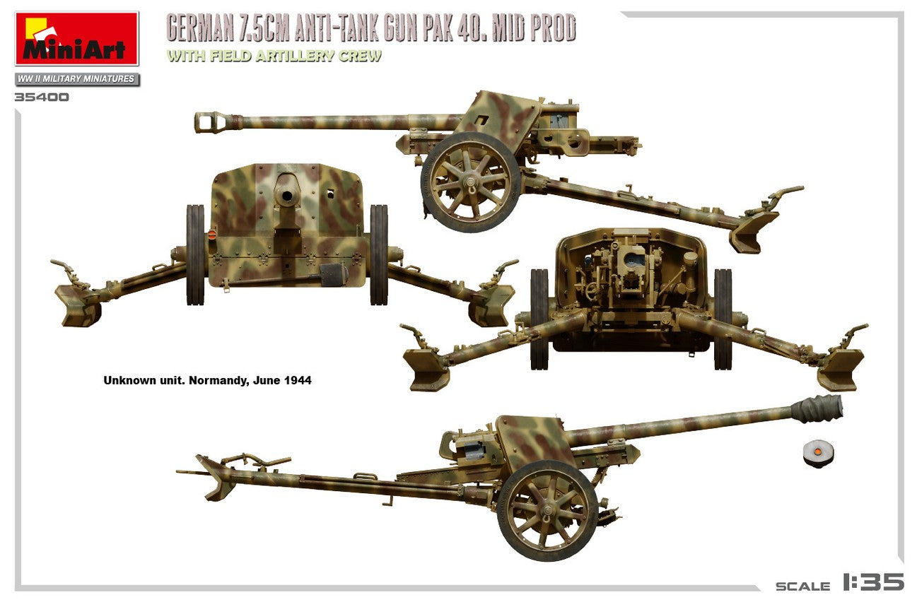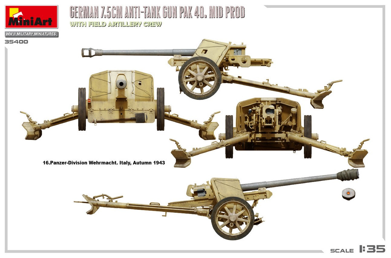 - Modelo de cañón alemán, en su versión intermedia, PaK. 40 de 75mm el cual fue utilizado extensamente utilizado en todos los frentes, en escala 1/35.