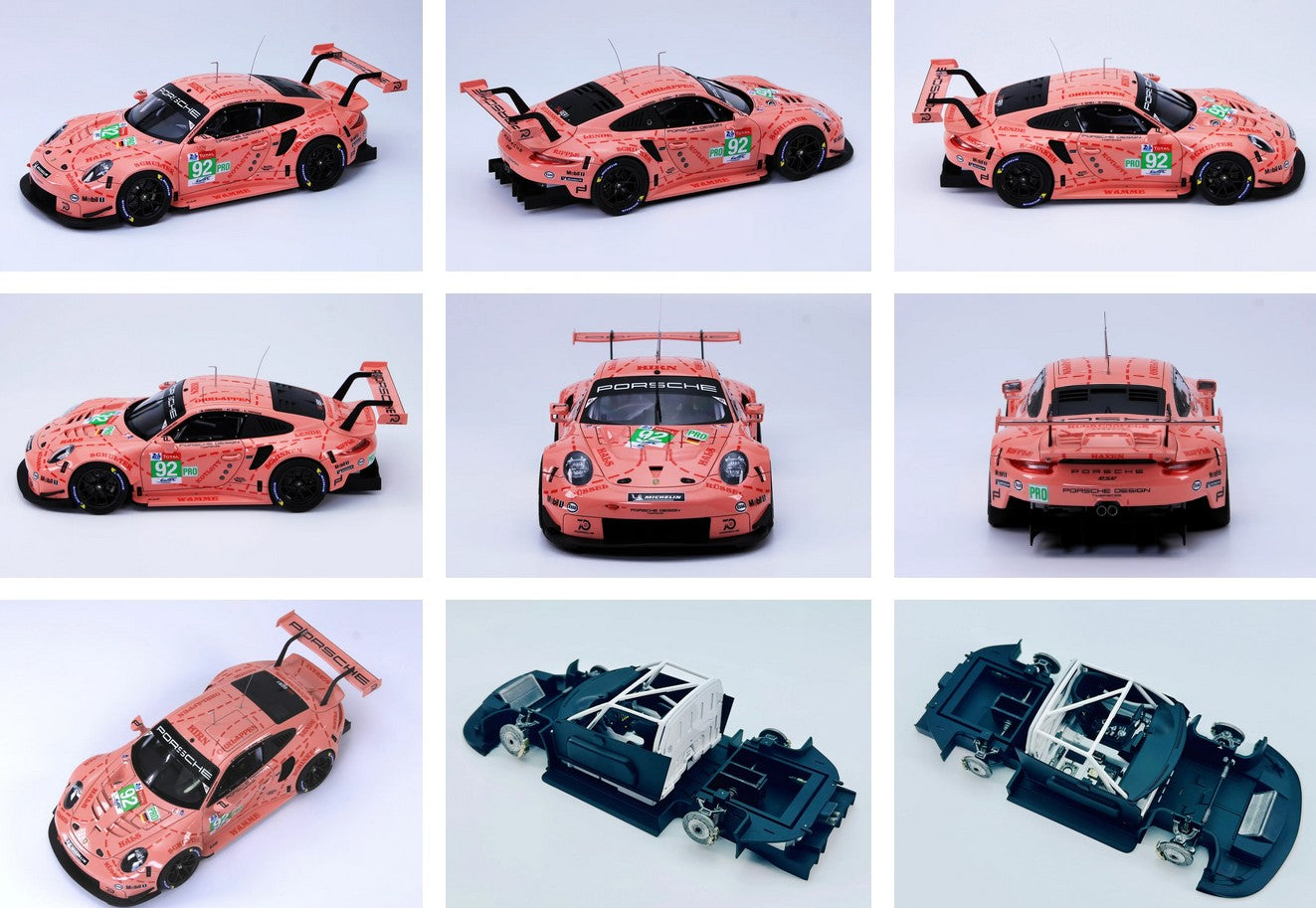 - Maqueta sin montar ni pintar del coche de competición Porsche 911 RSR, ganador del LM GTE de 2018, en escala 1/24.