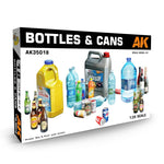 - Incluye 6 piezas de cada una de las botellas pequeñas y medianas y latas, y 2 piezas de cada una de las garrafas grandes, lo que hace un total de 60 elementos que pueden ser suficientes para detallar varias maquetas o dioramas.