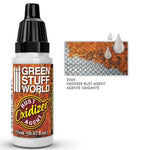- Agente oxidante que activa el proceso de oxidación natural de los metales generando porosidades y herrumbre natural. Los fotograbados de latón mejorarán el agarre de las pinturas. Un poco de óxido natural puede ser tóxico, se recomienda barnizar después de oxidar para sellar el óxido y evitar el contacto.
