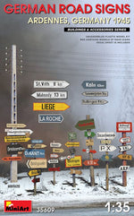 - Conjunto de postes y palos de hormigón con señales alemanas de carreteras, ambientadas en la zona de las Ardenas, en el invierno de 1944. En escala 1/35.