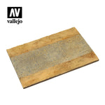 - Sección de camino rural empedrado con márgenes de tierra a ambos lados, donde podemos ubicar muros de piedra o ladrillo, señales de tráfico, árboles, figuras o vehículos.
