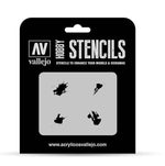 - Efectos de salpicaduras para líquidos de alta densidad, como gasolina o aceite, en paredes o suelos, en escala 1/35.