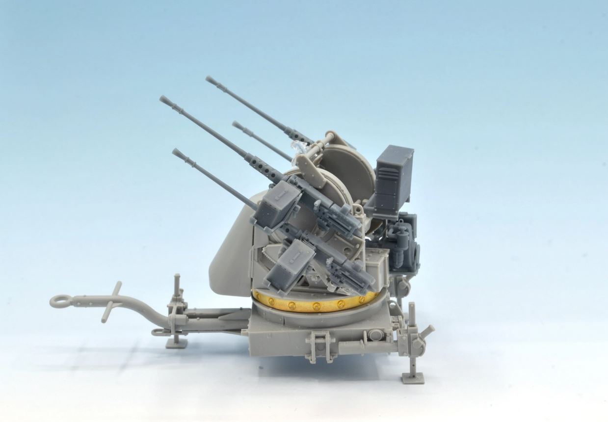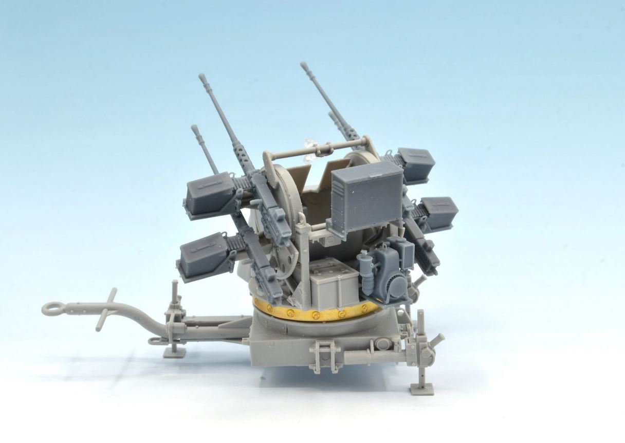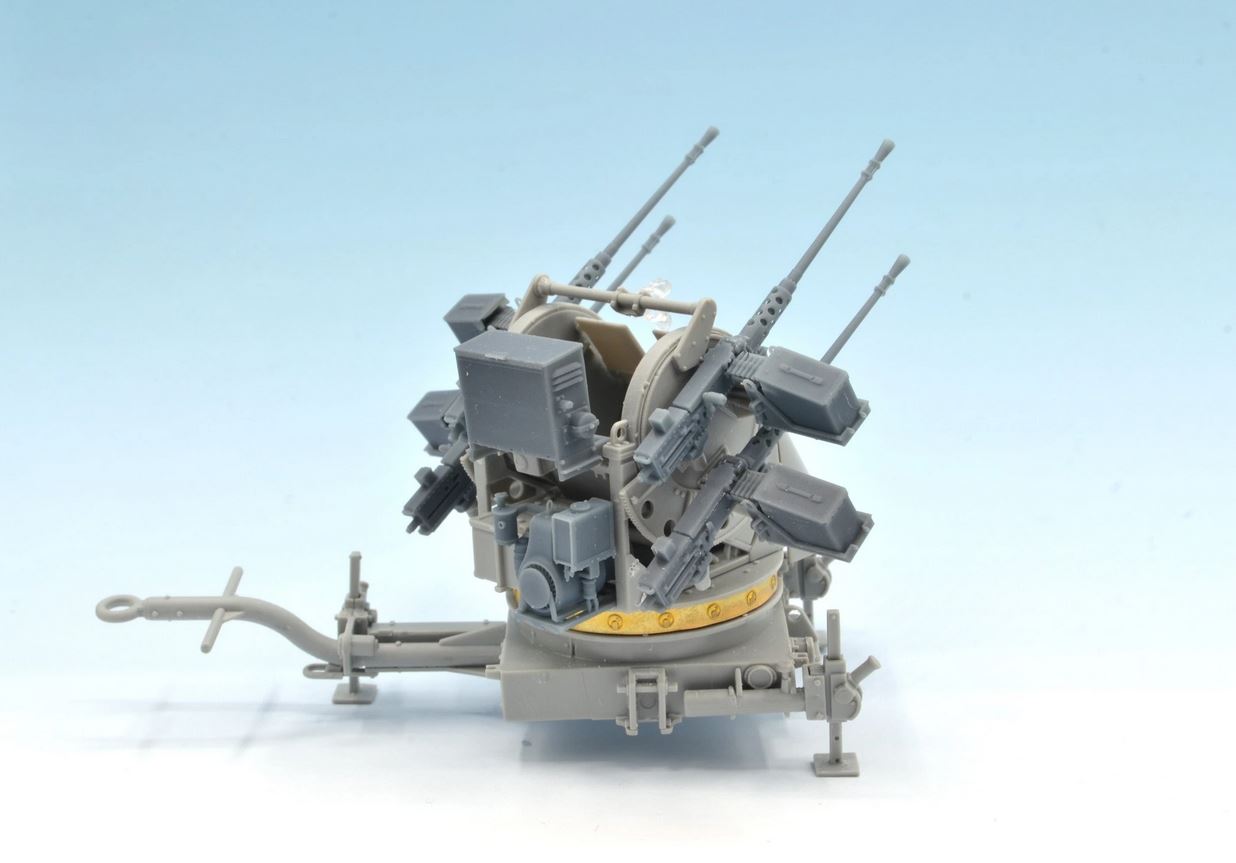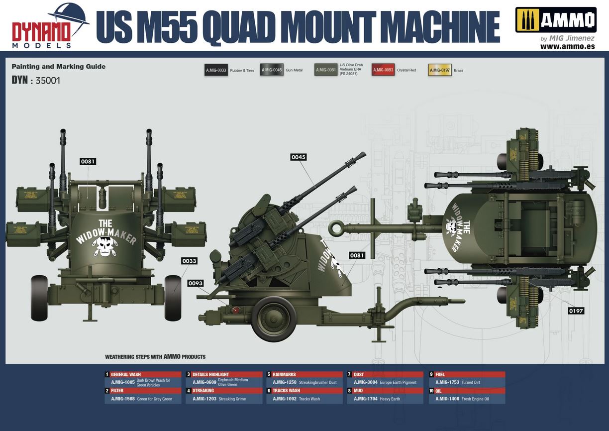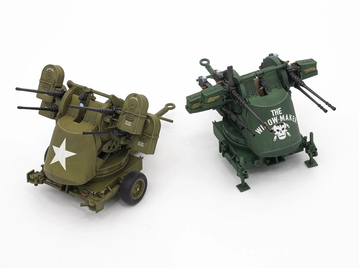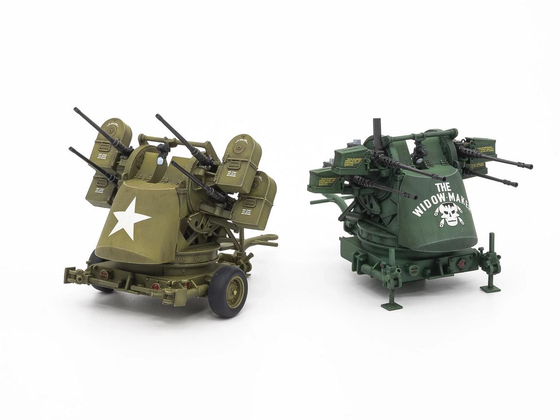 - Modelo de cañón anti-aéreo estadounidense de cuatro tubos M55 montado en carruaje M45, en escala 1/35.