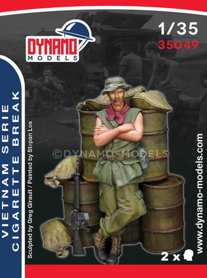 - Modelo de una figura de un soldado norteamericano en pose de descanso, apoyado en un bidones, durante la Guerra de Vietnam, a escala 1/35.