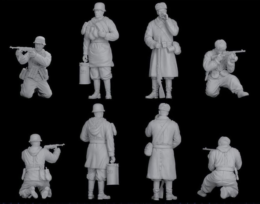 - Conjunto de soldados alemanes y rusos en uniforme durante la batalla de Kharkov en 1942, en escala 1/35.