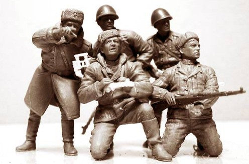 - Conjunto de figuras de soldados soviéticos, durante el cerco de Korsum en 1944 haciéndose una foto para los periódicos, en escala 1/35.