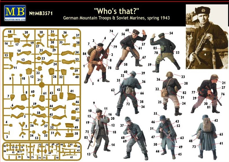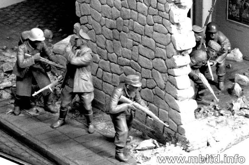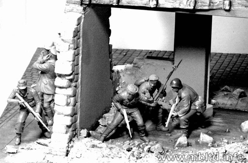 - Conjunto de figuras de tropas de montaña alemanas e infantes de marina soviéticos durante las encarnizadas batallas en el frente del este en 1943, en escala 1/35.