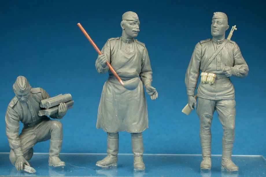 - Conjunto de figuras de soldados rusos con cocina de campaña PK-42, en escala 1/35.