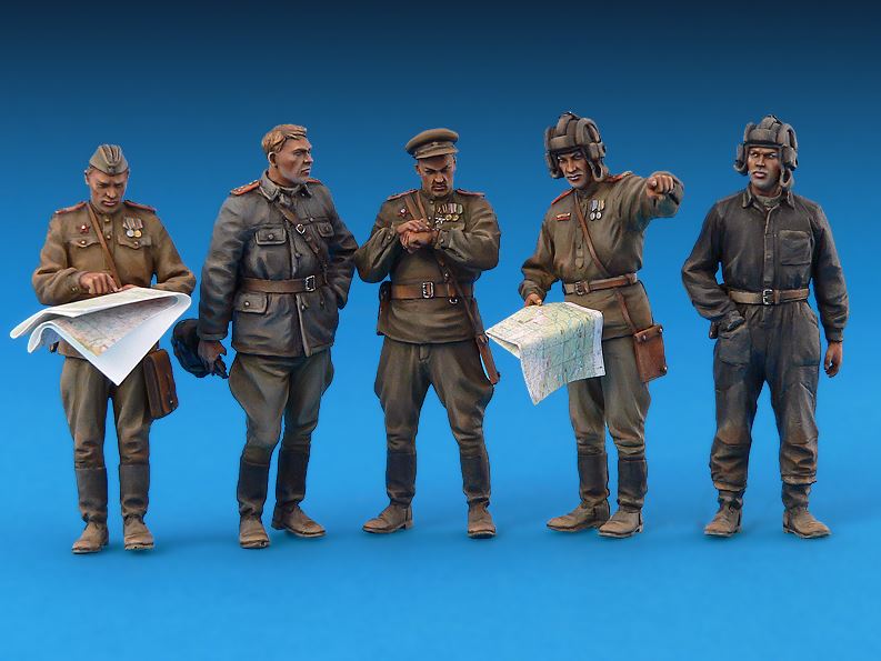 - Conjunto de figuras de oficiales soviéticos durante preparación táctica, en escala 1/35.