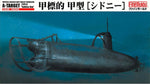 - Modelo de submarino japonés de ataque ligero para dos tripulantes y dos torpedos, en escala 1/72.