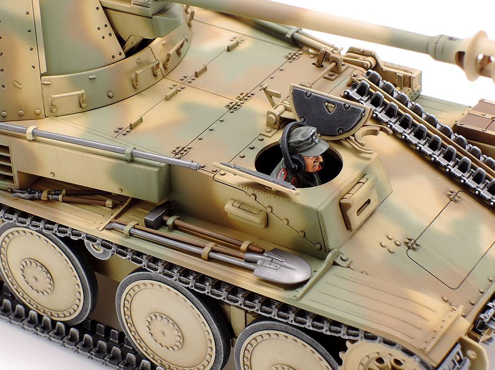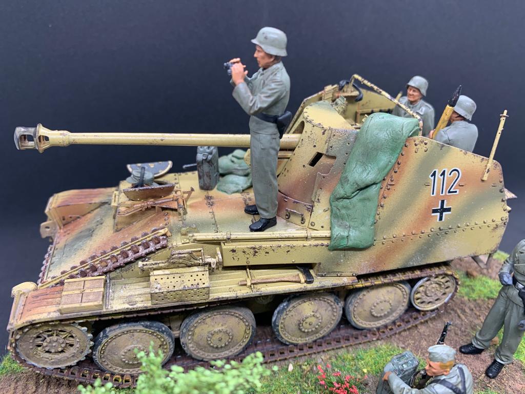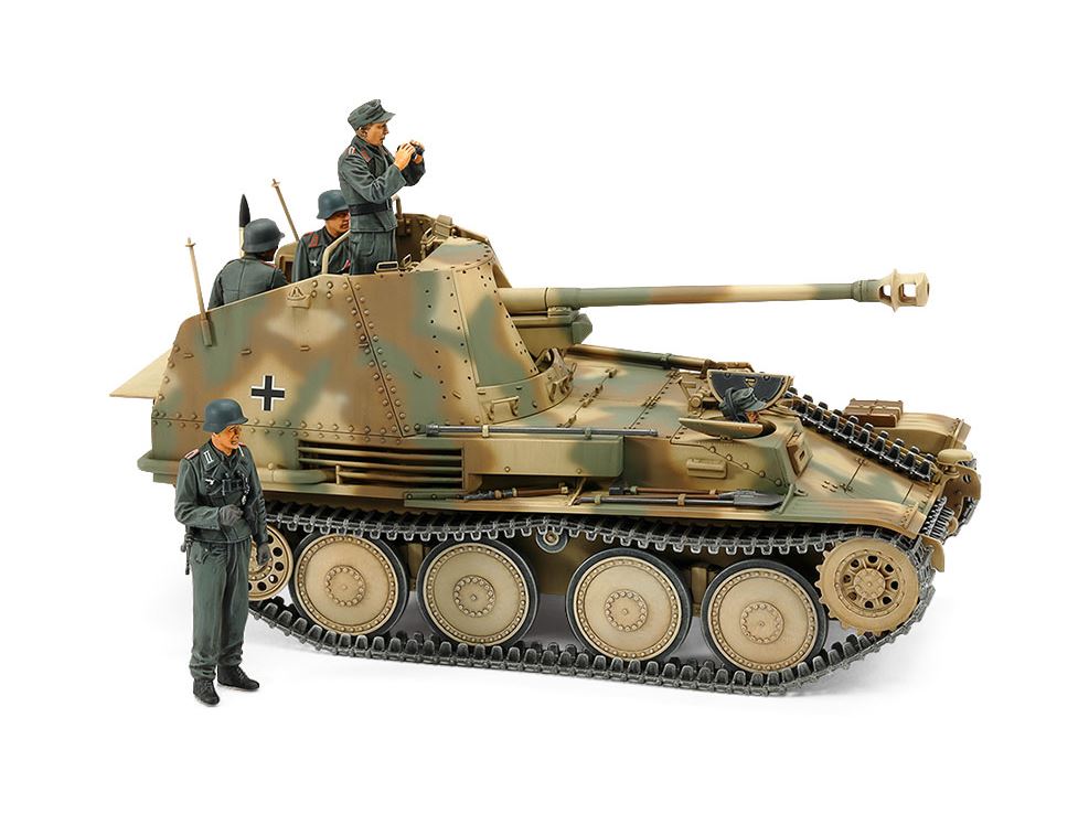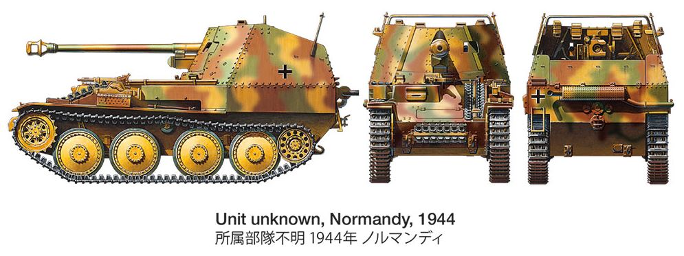 - Modelo de vehículo cazacarros alemán Marder III en su versión M, durante la campaña de Normandía en 1944, en escala 1/35.