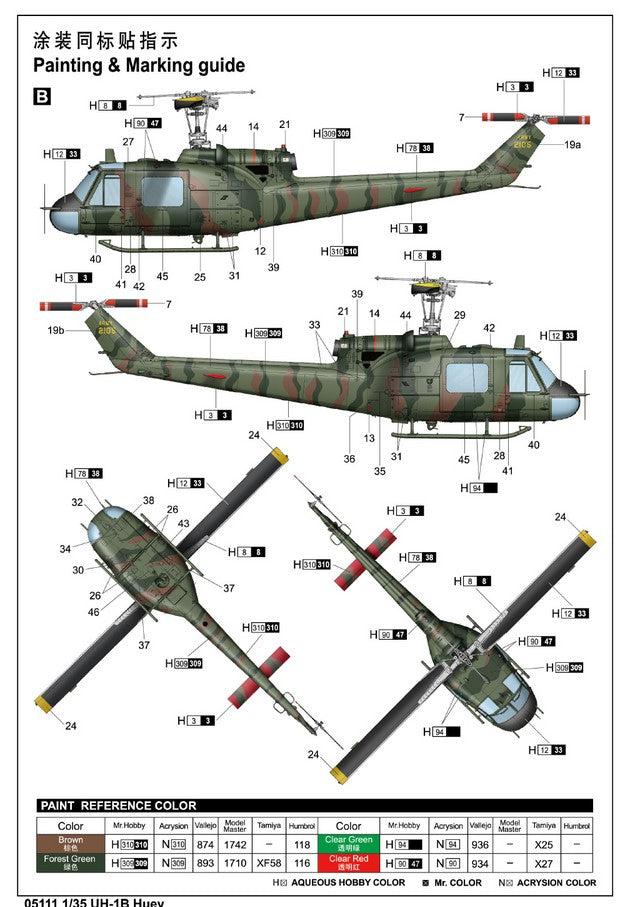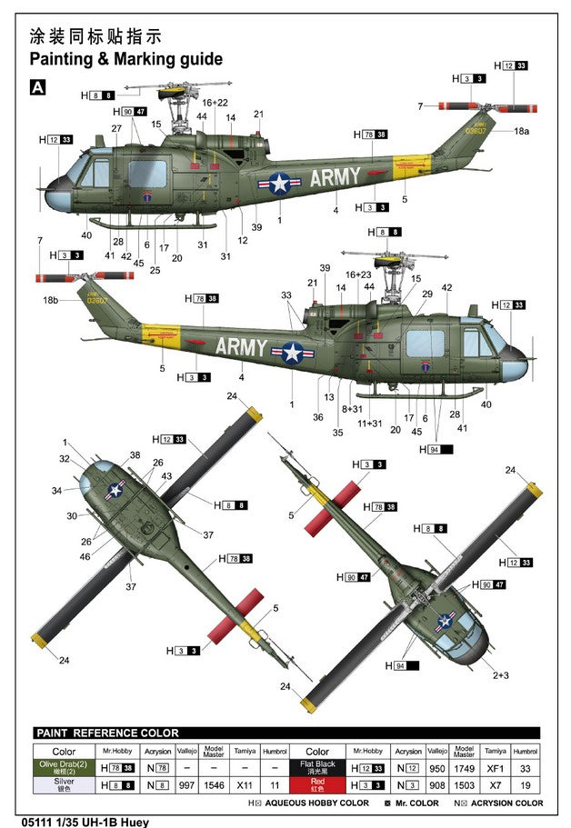 - Modelo de helicóptero de transporte norteamericano AH-1 Huey en su versión B inicial, en escala 1/35.