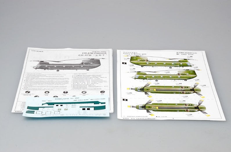 - Modelo de helicóptero norteamérciano de transporte CH-47 Chinook, el cual está en uso en muchos países del mundo (España entre ellos) en escala 1/72.
