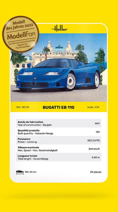 - Maqueta sin montar ni pintar del deportivo Bugatti EB 110, en escala 1/24.