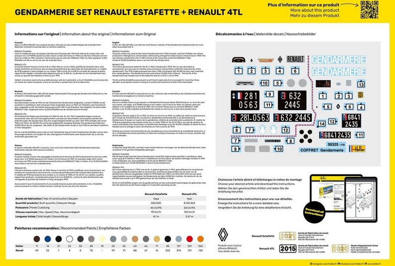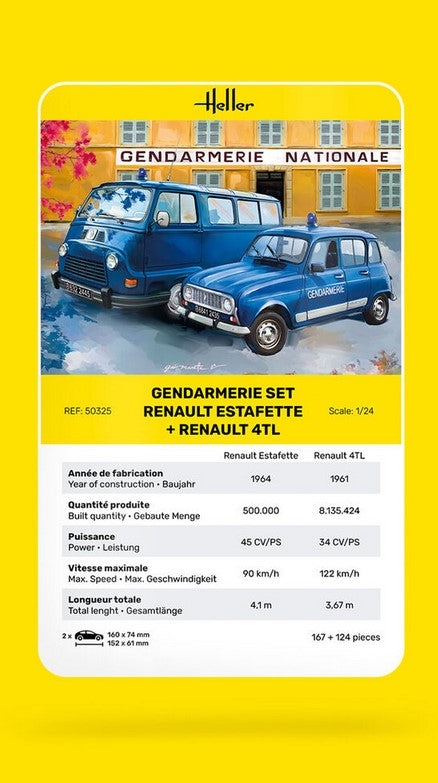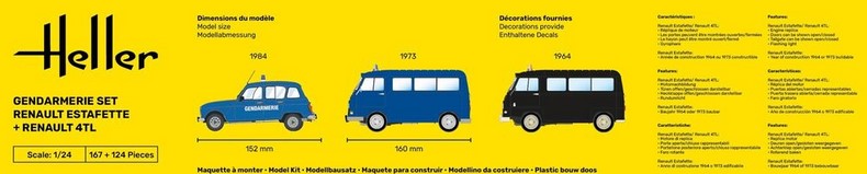 - Set de 2 vehículos Renault: la furgoneta Estafette y el utilitario 4TL, ambos vienen sin ni pegar, en escala 1/24.
