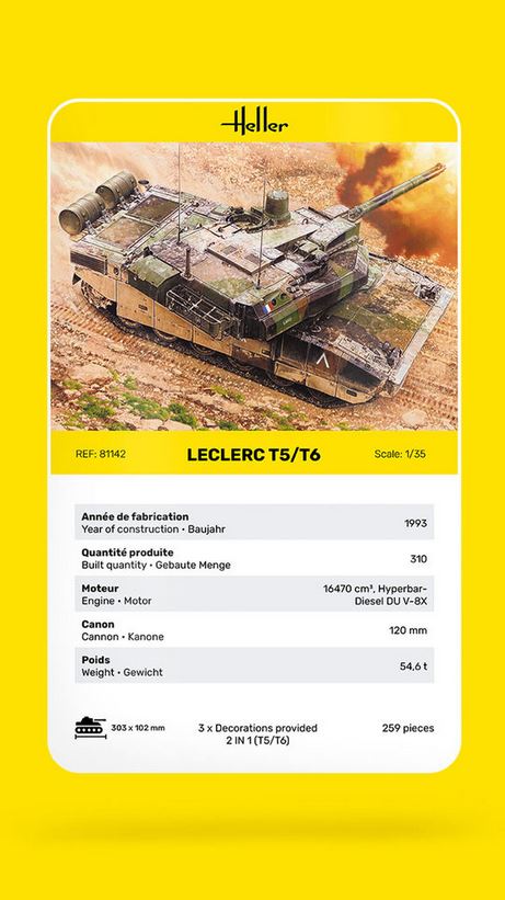 - Modelo del carro de batalle francés Leclerc en sus versiones T5 y T6, en escala 1/35.