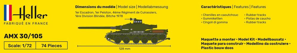 - Modelo de carro de combate francés modelo AMX 30 con cañón de 105mm, que sirvió en diferentes países como por ejemplo España, en escala 1/72.