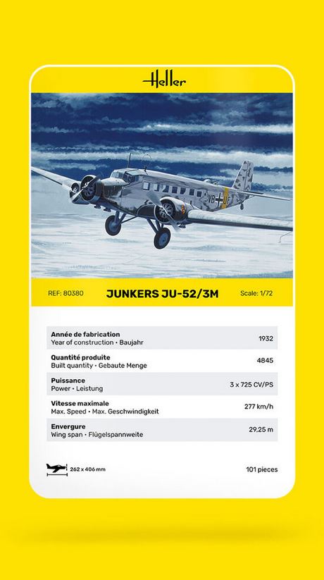 - Modelo de avión alemán de transporte Jun-52 en su versión 3m, que sirvió en distintos países, entre ellos España, en escala 1/72.