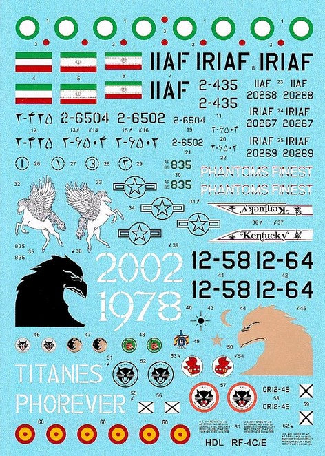 - Hoja de calcas para aviones de reconocimiento RF-4 Phantom en sus versiones C y E, en escala 1/48.