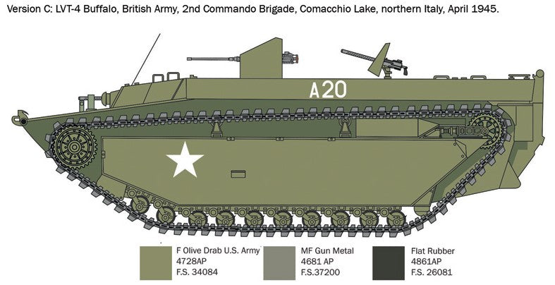 - Modelo de vehículo anfibio de transporte de tropas norteamericano LVT-4 Water Buffalo, en escala 1/35.