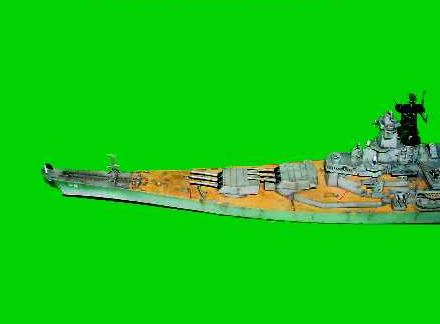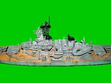 - Modelo de acorazado norteaméricano New Jersey después de su modernización en 1983, en escala 1/700.