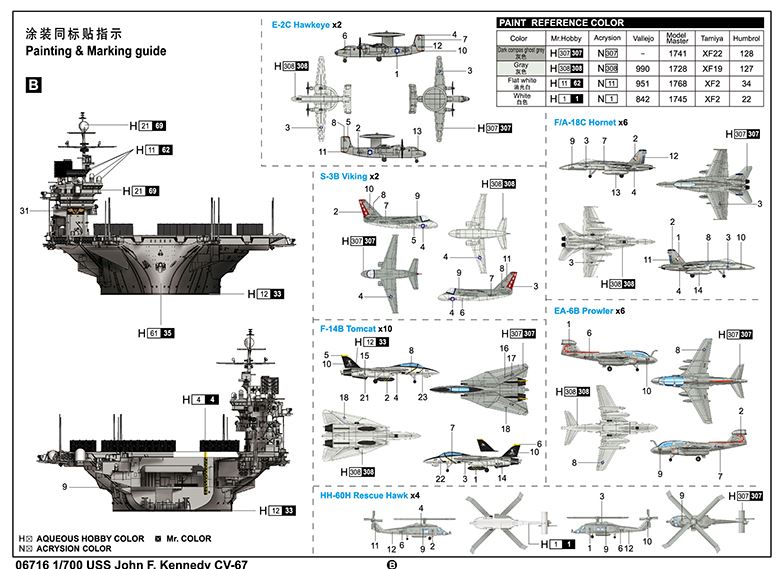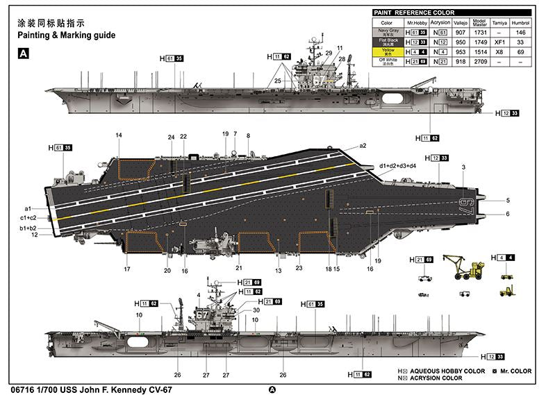- Modelo de portaaviones norteamericano John F. Kennedy con numeral CV-67, en escala 1/700.