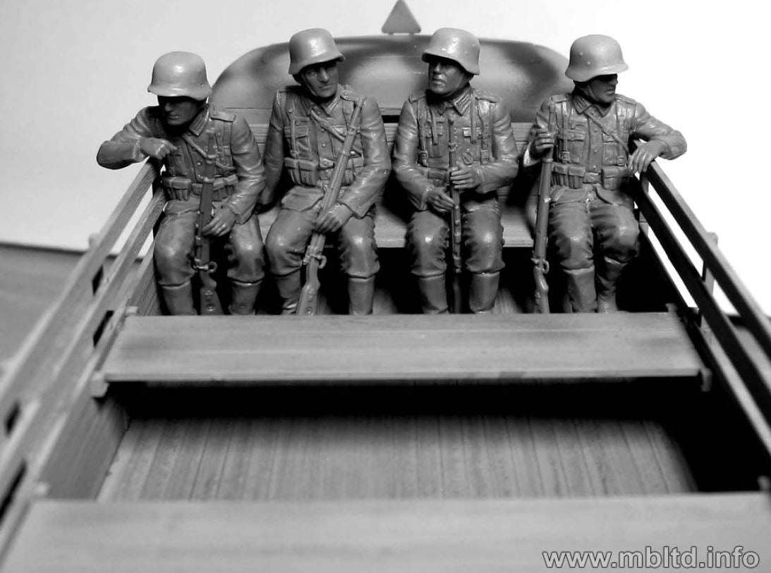 - Conjunto de figuras de soldados alemanes siendo transportados dejando el frente, en escala 1/35.